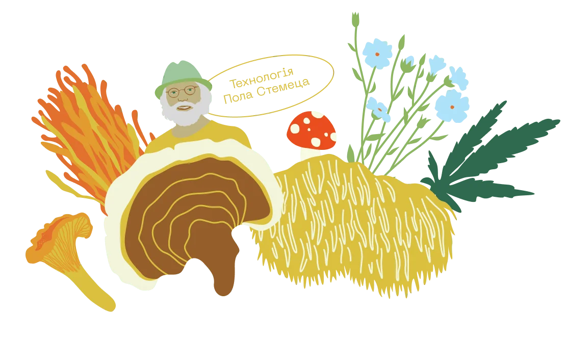 Ми вирощуємо їжовик гребінчастий, кордіцепс мілітаріс, трутовик різнокольоровий та інші гриби за технологіями та патентами Пола Стемеца на приватній фермі, яку очолює професійний міколог.