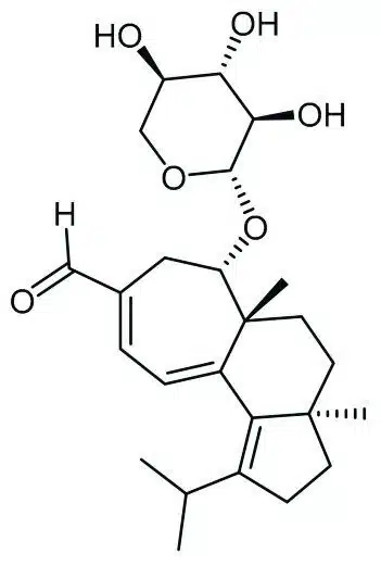 Еринацини – це корисні речовини, що допомагають мозку бути здоровим, підтримуючи ріст і роботу нервових клітин. Це важливо для поліпшення пам’яті та концентрації, а також для захисту мозку від пошкоджень, що можуть виникати з віком або через хвороби, як-от хвороба Альцгеймера. Особливо цінним є еринацин А (зображення на картинці) тому що він може потрапляти прямо в мозок і допомагати в його лікуванні та підтримці.