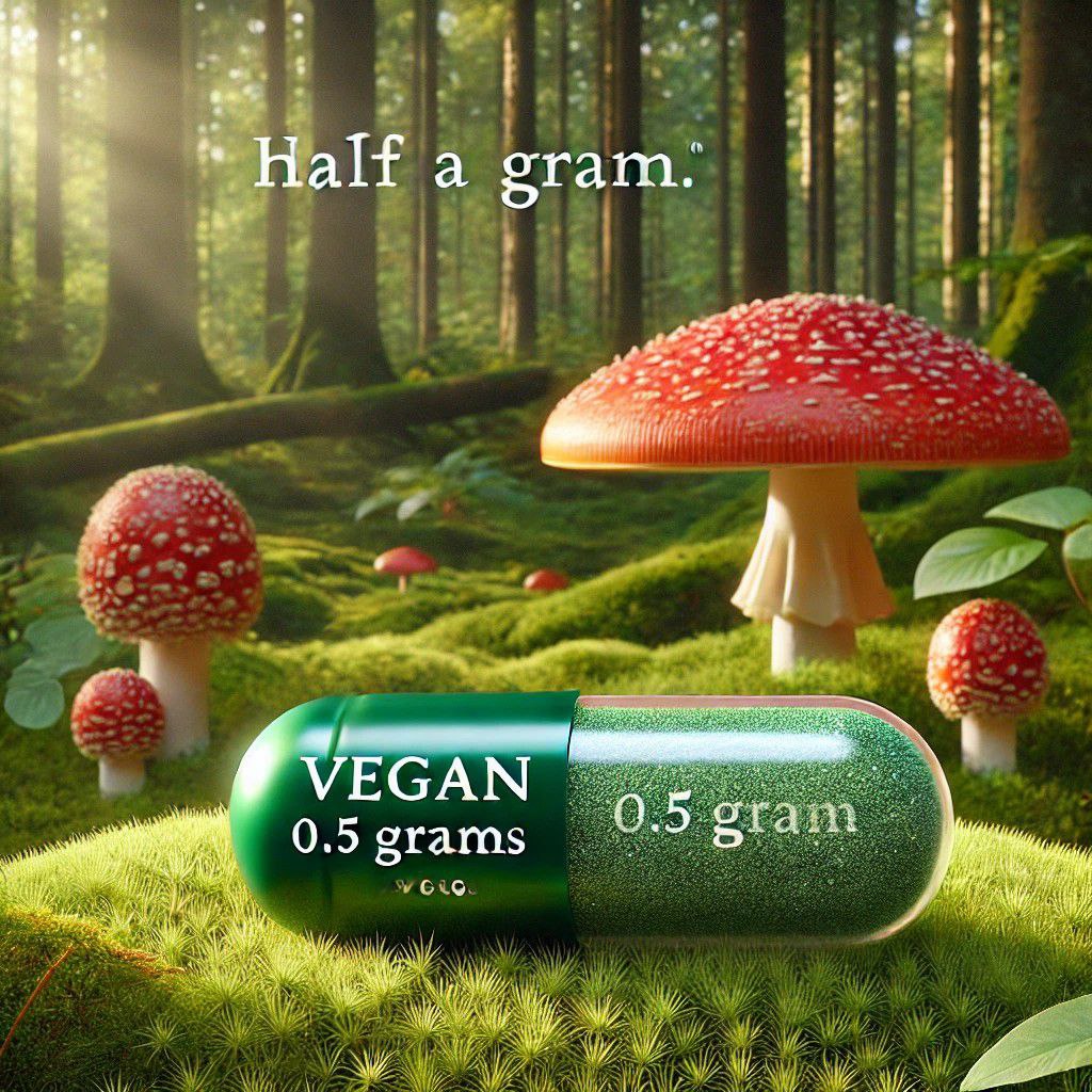 Найзручніше вживати мухомор у капсулах, які забезпечують точність дозування та легкість використання. Оптимально приймати одну капсулу вранці та одну капсулу ввечері. Втім, якщо вечірня доза викликає надмірну бадьорість або заважає засинанню, рекомендуємо перенести обидві дози на першу половину дня. Так Ви збережете енергетичний баланс протягом дня і забезпечите собі спокійний сон. Мікродозинг у капсулах – це комфортно і легко. В одній веганській капсулі міститься 0,5 грама мухомора сушеного.